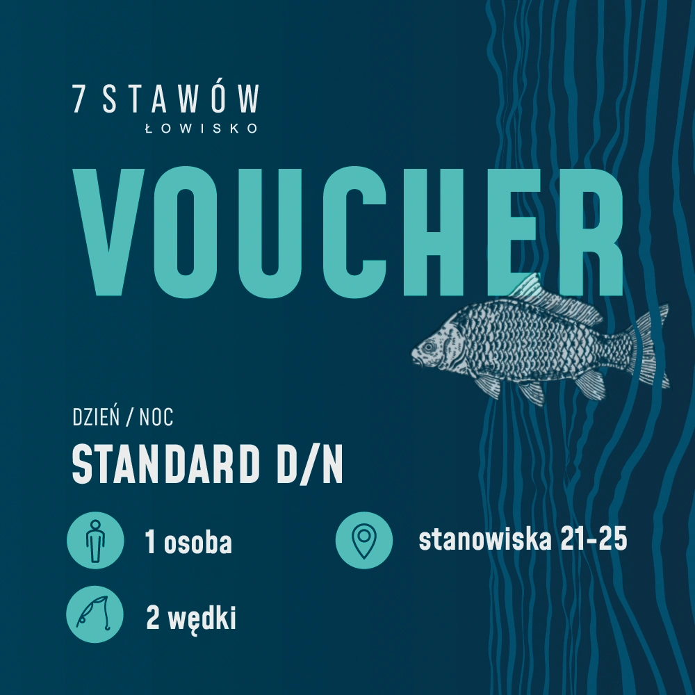 Voucher uprawnia do wędkowania w naszym łowisku, w formule „no kill” (złów i wypuść). W stawie można spotkać m.in. karpie, amury, sumy, jesiotry, toupygi