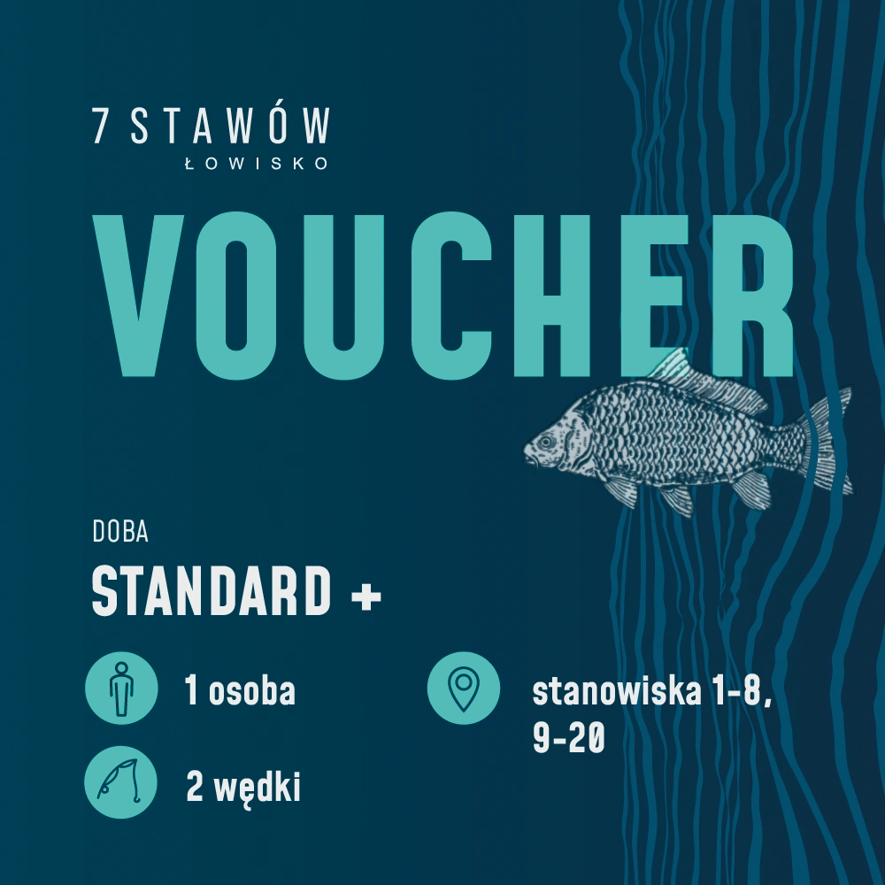Voucher uprawnia do wędkowania w naszym łowisku, w formule „no kill” (złów i wypuść). W stawie można spotkać m.in. karpie, amury, sumy, jesiotry, toupygi